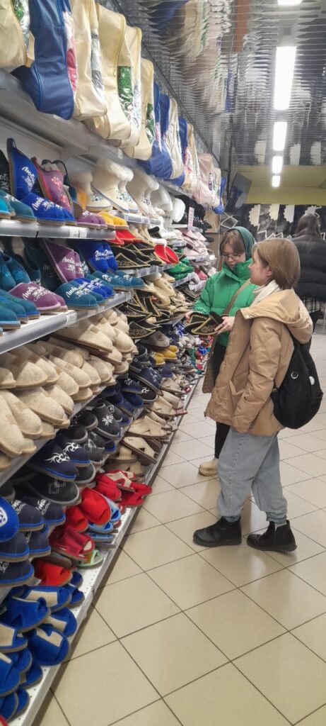 19.03.2025 года студенты Казанского колледжа технологии и дизайна под руководством преподавателей Веледенской Ольги Владимировны и Марышевой Гульнары Камильевны выезжали на экскурсию на Кукморский валяльно-войлочный комбинат для более глубокого освоения учебных дисциплин. Русская поговорка гласит: -» Лучше один раз увидеть, чем 100 раз услышать». Предприятие встретило студентов радушно. Очень внимательно сопровождали и рассказывали студентам о производстве, экскурсоводы. Экскурсия включала знакомство с организацией складских помещений сырья, цеха первичной обработки шерсти: ознакомление с устройством промывного агрегата и сушки шерсти, поточной организации труда в обувном производстве, чесально-основальным цехом, швейным цехом. Студенты внимательно слушали экскурсовода и следили за пооперационной работой работников чесально-основального цеха, организацию работы которого сейчас изучают студенты 2 курса специальности » Технология текстильных изделий». Для студентов 3 курса было полезно ознакомиться с работой валяльно-сушильного цеха. Кульминацией экскурсии было знакомство всех студентов с организацией работы и ассортиментом швейного цеха предприятия, где изготавливают тапочки, обувь сшивным способом, изделия широкого потребления. Студенты отметили высокую культуру производства, продуманную механизированную систему межоперационных транспортировок, когда полуфабрикат перемещается из цеха в цех при помощи монорельсов с подвесными тележками, на транспортерах, лифтах. Сырье перемещается по пневмопроводу, без участия рабочих. Пообедали студенты в производственной столовой , где удивили демократичные цены и очень вкусная еда. В завершении пребывания в Кукморе посетили специализированный магазин предприятия, где многие студенты и преподаватели приобрели красивую и экологичную домашнюю обувь себе и близким. Экскурсия очень понравилась, некоторые студенты изъявили желание работать на предприятии после завершения учебы. Благодарим директора комбината Лялю Шамилевну, специалиста- технолога Елену Валерьевну и экскурсовода за теплый прием! Желаем предприятию дальнейшего роста и совершенствования.
