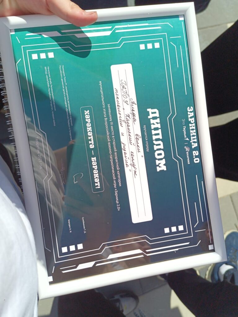 Зарница: Больше, чем просто игра – это воспитание патриотизма и командного духа. «Зарница» – это не просто ностальгическая игра из детства, а полноценное военно-спортивное соревнование, которое и сегодня играет важную роль в воспитании молодежи. Этот захватывающий конкурс объединяет в себе физическую подготовку, знания основ безопасности, умение работать в команде и, конечно же, патриотическое воспитание. Сегодня «Зарница» проводится на разных уровнях: от школьных мероприятий до областных, и даже всероссийских соревнований. Организаторы стремятся сделать ее более современной и интересной для молодежи, включая в программу элементы компьютерных технологий и инновационные задания. И наш Казанский колледж технологии и дизайна впервые принял в этом мероприятии участие От нашего колледжа была представлена команда «Альфа Волки». Мы очень усердно готовились к этому соревнованию. И вот, что было в программе » Зарницы»: Строевая подготовка: Оценивается умение участников выполнять строевые команды, держаться в строю и демонстрировать дисциплину. Военно-прикладные навыки: Включают в себя метание гранаты, стрельбу из пневматической винтовки (или лазерного оружия), сборку и разборку автомата (чаще всего учебного). Медицинская подготовка: Оказание первой помощи пострадавшим, наложение повязок и шин. Операторы БПЛА Мы со всеми испытаниями справились хорошо Каждый из нас проверил свои силы, и сделал вывод на что он способен У нас очень дружная команда, мы сплочены. После всех пройденных испытаний, подсчитали наши балы, и объявили результаты Наша команда стала третьей, но для нас это хороший результат, так как мы впервые там участвовали! Благодарим всех, кто нам помогал и преподавателей, и администрацию , и Неустроева Данила Алексеевича, что помог нам , когда мы остались без наставников.