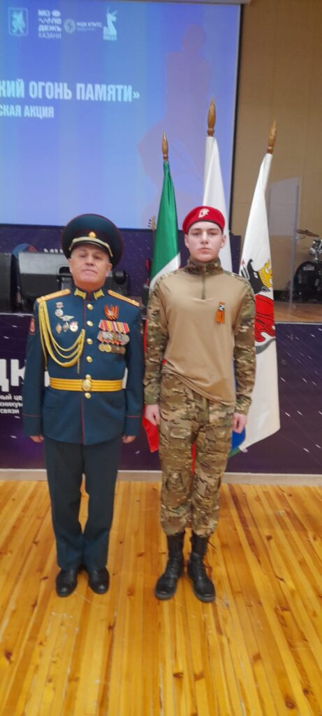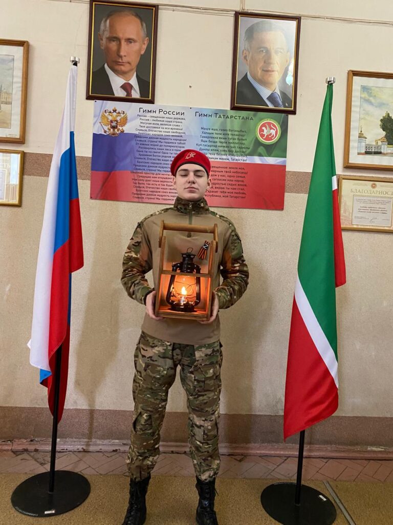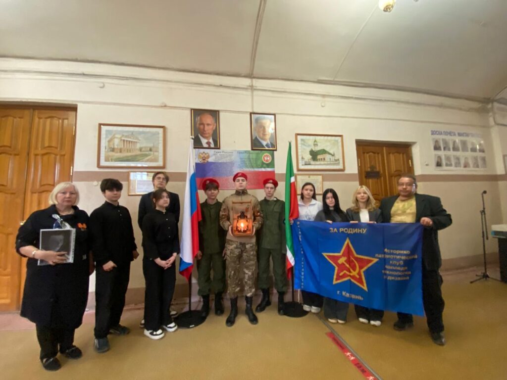 28.02.2025 г бойцы отряда » Юнармия»и члены историко — патриотического клуба » За Родину!» Казанского колледжа технологии и дизайна передали эстафету шествия «Огня Памяти» Казанскому техникуму информационных технологий и связи. Заместитель директора по воспитательной работе Веледенская Ольга Владимировна сказала слова напутствия принимающей стороне, а командир отряда » Юнармия» Искандаров Идрис вручил » Огонь Памяти» директору техникума, заверив, что история Великой Победы советского народа и » Огонь Победы» в сердцах студентов никогда не угаснут и мы будем чтить Героев, отдавших свою жизнь за свободу и независимость нашей Родины.