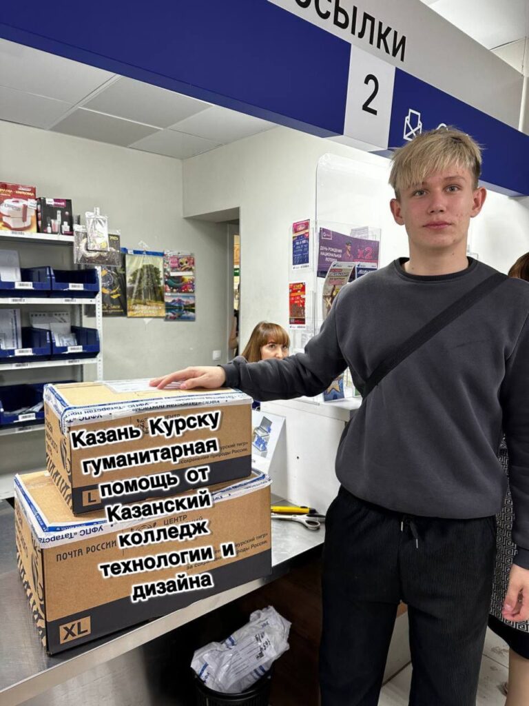 Сегодня студентами нашего колледжа была отправлена партия гуманитарной помощи для обеспечения жителей города Курск горячим питанием. Принято решение отправлять гуманитарную помощь еженедельно Через почту России сегодня отправлено две коробки.отправлено — 667 тарелок 493 кружки 138 ложек 158 вилок 106 ножей Напомним,что с помощью собранной нами посуды фонд Пища Жизни будет обеспечивать население Курска бесплатным горячим питанием