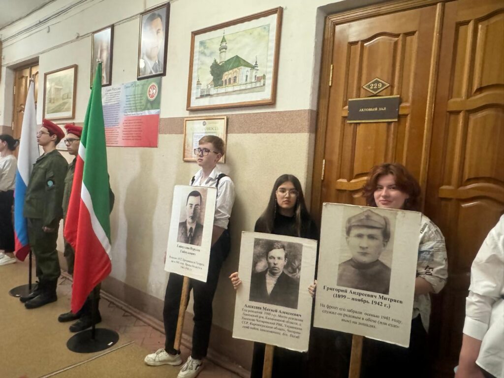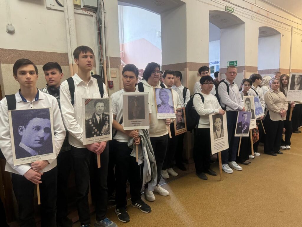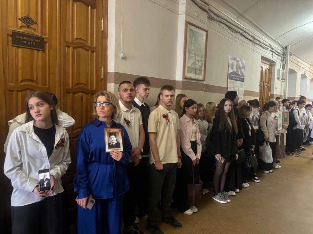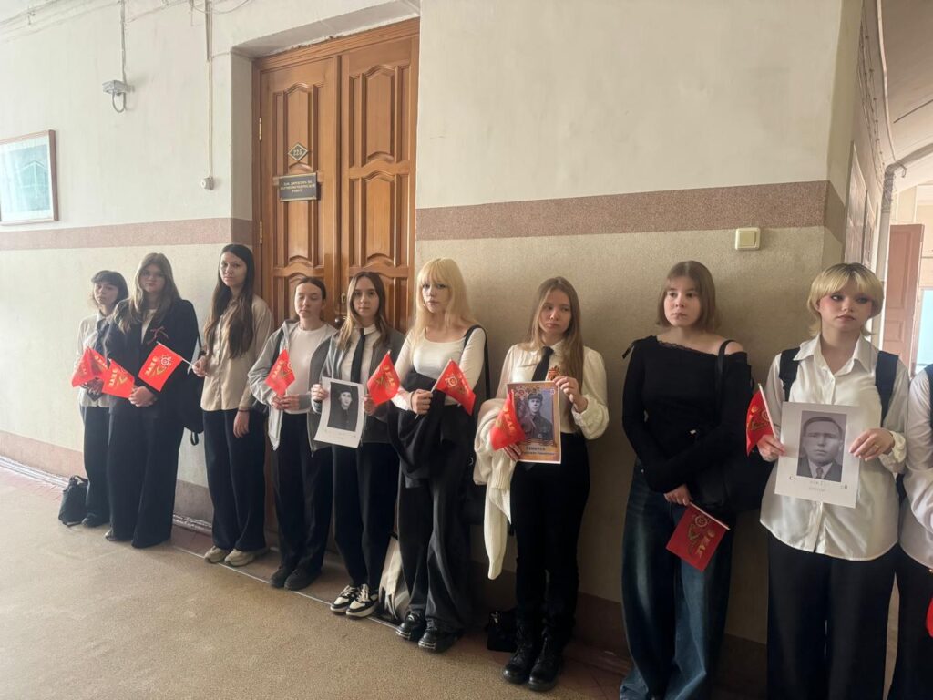 5.05.2025 года в Казанском колледже технологии и дизайна прошла торжественная линейка в честь знаменательной даты, 80-Победы российского народа в Великой Отечественной войне 1941-1945 гг. Началась линейка с вноса знамен и исполнения Гимнов России и Татарстана. На линейку студенты, преподаватели и руководство колледжа пришли с портретами своих предков — героев войны, сражавшихся на полях битв и в тылу за свободу и независимость нашей Родины — России. Состоялась Акция «Бессмертный Полк», которую возглавили директор колледжа Ирек Фаритович Даутов и заместитель директора по учебно — воспитательной работе Ольга Владимировна Веледенская. Ирек Фаритович открыл линейку. Он напомнил о высокой цене, которую заплатил наш народ за Победу — 27 млн. погибших и провел параллель с сегодняшним днем, с СВО. Снова угроза фашизма нависла над нами, но мы не позволим укрнацистам одержать верх. Наше дело правое. Враг будет разбит!Победа будет за нами! Далее Ольга Владимировна мотивировала студентов на участие в праздничных мероприятиях и акцентировала внимание на том, что отмечаем не просто праздник 9 мая, а чествуем и чтим ветеранов, которые ценой собственной жизни одержали эту Победу! Пригласила 9 присоединиться к Акциям » Бессмертный полк», » Вальс Победы», «Окна Победы» , » Волонтеры Победы и др.