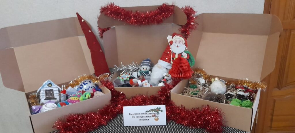 На завершающей учебной неделе , по итогам конкурса поделок » Новогодняя игрушка» собрана выставка поделок. Красиво украшенные, сверкающей мишурой и специально подобранные по номинациям конкурса игрушки, выставлялись на 2 этаже, чтобы все смогли увидеть рукодельное творчество студентов колледжа: Деды Морозы, избушка на курьих ножках, расписные шары, гномики и вязаные игрушки, повышают чувство предновогоднего настроения. Выставка еще раз показала насколько талантливы наши студенты. Спасибо всем, кто порадовал нас своим творчеством!